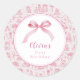 Pegatina Redonda Pink Toile Coquette Bow Primer Chica de cumpleaños