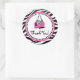 Pegatina Redonda Pink Zebra Birthday Spa Diva Party Favor