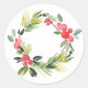 Pegatina Redonda Pino acuarela y feriado botánico Holly Wreath