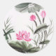 Pegatina Redonda Pintado De Acuarela De Flor De Lotus