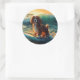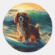 Pegatina Redonda Pintura Cavalier King Beach para surf