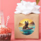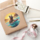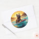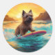 Pegatina Redonda Pintura de Cairn Terrier Beach Surfing