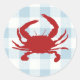 Pegatina Redonda Pintura de cangrejo rojo nautical Blue Gingham Che