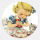Pegatina Redonda Pintura de gato de Chica de cumpleaños retro