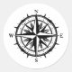 Pegatina Redonda Pintura de Rosa de brújula negra y blanca