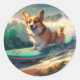 Pegatina Redonda Pintura de surf de Corgi Beach