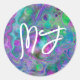 Pegatina Redonda Pintura monogramada de color púrpura y azul