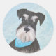 Pegatina Redonda Pintura Schnauzer (en miniatura) - Perro original