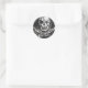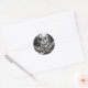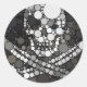 ¡Haga una versión moderna del clásico cráneo pirata y el logo de las espadas cruzadas con esta huella de círculo abstracto! Impresión general en blanco y negro.