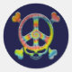 Calavera y huesos cruzados con una cabeza de símbolo de paz, en tintes. Arte colorido en camisetas, caramelos, cartas, regalos.