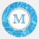 Pegatina Redonda Piscina azul espumosa Monograma de agua