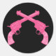 Pegatina Redonda Pistolas cruzadas rosadas retro