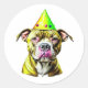 Pegatina Redonda Pitbull con Gorra de cumpleaños