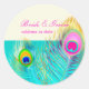 Pegatina Redonda PixDezines pluma de pavo real/aqua/turquesa
