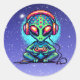 Pegatina Redonda Pixel Art Alien jugando videojuegos