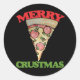 Pegatina Redonda Pizza de Navidades Merry Crustmas