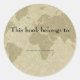 Un mapa del mundo de estilo antiguo que está todo gastado alrededor de los bordes con "Este libro pertenece a..." escrito en la imagen.
