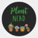 Pegatina Redonda Planta Nerd Funny Gardening and Houseplant