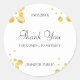Plantilla de confeti dorado guión Gracias elegante pegatina redonda clásica.