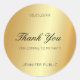 Plantilla clásica de pegatina redonda de agradecimiento de texto de escritura a mano de oro.