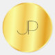 Plantilla de monograma elegante con aspecto metálico dorado falso Pegatina redonda clásica.