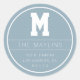Pegatina Redonda Plantilla de nombre y monograma únicos | Azul polv