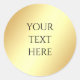 Plantilla de oro falso glamour para agregar texto personalizado Elegante pegatina redonda clásica.