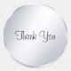 Plantilla de texto de agradecimiento, letra moderna, pegatina redonda clásica elegante de color plata metálico.