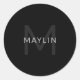 Pegatina Redonda Plantilla de texto editable para nombre monocromát