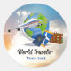 PLANTILLA de viajero mundial, personalizable—pasaporte, boletos, globo, avión, maleta sobre un fondo de nubes