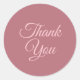 Plantilla elegante de texto de agradecimiento personalizado en rosa oro Pegatina redonda clásica de moda.