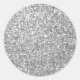 Pegatina redonda clásica con plantilla en blanco con brillo plateado glamuroso.