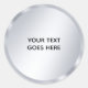 Pegatina redonda clásica elegante plantilla moderna en blanco con aspecto metálico plateado tendencia. Agregue su texto