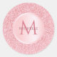 Plantilla Glitter Rosa Dorado con Estilo y Tendencia Monograma Elegante Clásico Circular Sticker.