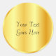 Plantilla elegante y clásica de pegatina redonda con texto personalizado y aspecto metálico dorado falso de moda.