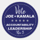 Vote Joe Biden Kamala Harris, pegatina de Plantilla Electoral 2024. Esta es una plantilla directa que puede personalizar para el candidato deseado. Descripción del diseño: el fondo es un archivo plano en azul del indicador. Puede quitarlo y sustituir el color de fondo preferido. Alrededor del borde del diseño hay un círculo gris claro y claro. La parte superior del diseño tiene la palabra "Vote" en una letra de guión. Debajo de eso, en sans serif all-caps se encuentra una plantilla con las palabras "Joe" y "Kamala", separados por una estrella. Debajo de eso, cinco estrellas, y debajo de las estrellas están las palabras de plantilla, "Responsabilidad" y "Liderazgo". En la parte inferior hay una plantilla para la fecha de las elecciones o el año. Los nombres, las características y las fechas son plantillas que se pueden personalizar para el candidato preferido.