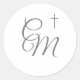 Pegatina Redonda Plata Monogramada con cruz