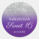 Fondo de pintura purpurinoso gris plateado imitación gris, emparejado con un overlay de color púrpura real y algo de brillo purpurinoso extra. Purpurina de plata de imitación glam y gradiente de púrpura real dulces pegatinas de sello para sobres de dieciséis años. El texto "Sweet 16" está en una caligrafía blanca moderna. Las plantillas de texto de fecha y nombre personalizadas son un estilo de tipo de letra de todos los mayúsculas.