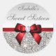 Pegatina Redonda Plata Secuencias Rojo Bow Diamond Sweteen