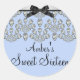 Pegatina Redonda Plata y Azul Diamantes para siempre Dulce 16 Pegat