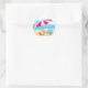 Ilustracion con vistas a la playa con sombrillas y baloncesto
