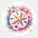 Pegatina Redonda Playa de arena rosa, azul y dorada