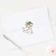 Adéntrate en el espíritu navideño con esta pegatina festiva de Navidad con acuarela que presenta una gran palmera envuelta en luces de Navidad coloridas. Tres medias navideñas cuelgan juguetonamente de las frondas, con suave arena de playa en la base para un toque cálido y tropical.