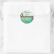 Pegatina Redonda Playa panorámica tropical Verde azulada Gracias Pe