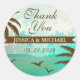 Playa Escénica Tropical Verde azulada Gracias Pegatina. Un gran agradecimiento pegatina por todas sus necesidades de envío o embalaje. Coloca tus sobres como sellos o envasa un regalo muy lindo y usa estos para mostrar tus gracias! Un océano azul turquesa con olas. Las palmeras están en primer plano y también en segundo plano, lo que hace de esto un gran panorama gracias pegatina. Saludo al frente. ¡Coincide con nuestra línea de papelería boda de coordinación para su boda!