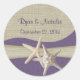 Pegatina Redonda Playa Starfish & Burlap Purple