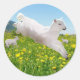 Estos encantadores pegatinas redondos presentan mi diseño de los Lambs primaverales jugando alegremente contra un prado de flores silvestres. Ideal para sellar sobres o regalos envueltos.