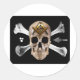 Pegatina Redonda Plaza de brújula de cráneo masónico y huesos