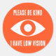 Pegatina Redonda Please Be Kind, I Have Low Vision