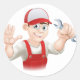 Pegatina Redonda plomero feliz o mecánico con spanner